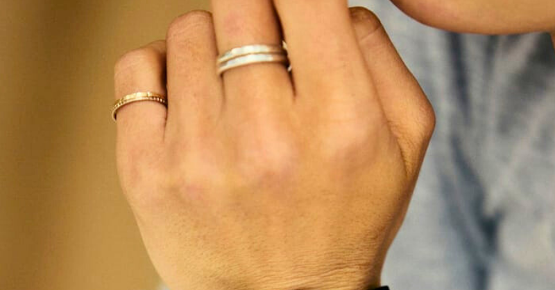 左手中指についてるのをよく見るのですが、シルバーに近い二重リング